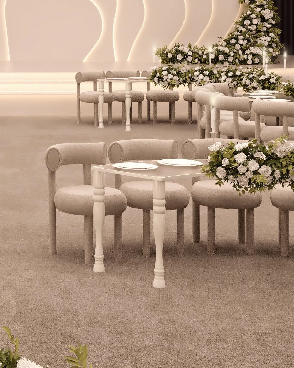 This trend has directly driven a blowout growth in the demand for personalized customization of wedding banquet furniture. Couples are no longer limited to standardized products; instead, they expect wedding banquet furniture such as dining tables, chairs, and stage decoration furniture to be highly consistent with the wedding theme. Whether it is pattern design, color matching, or material selection, all should reflect their personal characteristics and taste. For example, couples holding a new Chinese-style wedding will require dining tables carved with traditional cloud and peony patterns, and chairs matched with embroidered cushions; while couples who prefer two-dimensional style may need customized dining table panels printed with anime elements or chairs modeled after anime scenes.